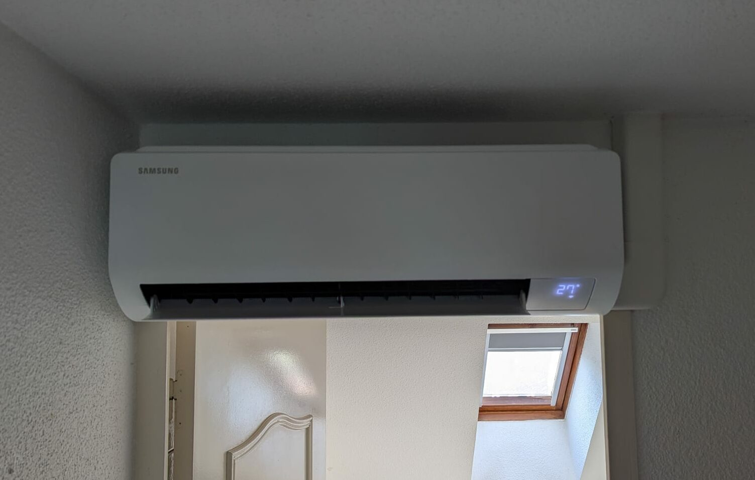La société Action Froid a réalisé l’installation d’une climatisation murale Samsung dans une maison située à Soultz. L’unité intérieure a été fixée en hauteur, au-dessus d’un encadrement de porte, ce qui permet une diffusion d’air optimale dans la pièce, tout en gardant un encombrement minimal.